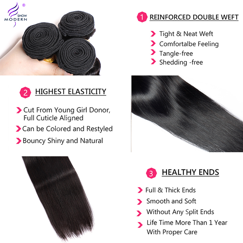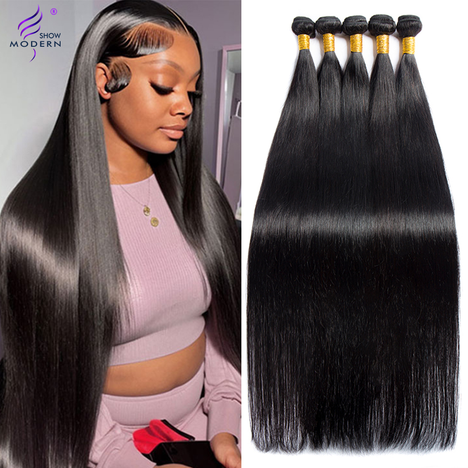 Modern Show 40 42 Inch Straight Bundles Human Hair Brazilian Remy Long Hair Natural Color 100% Human Hair Extension