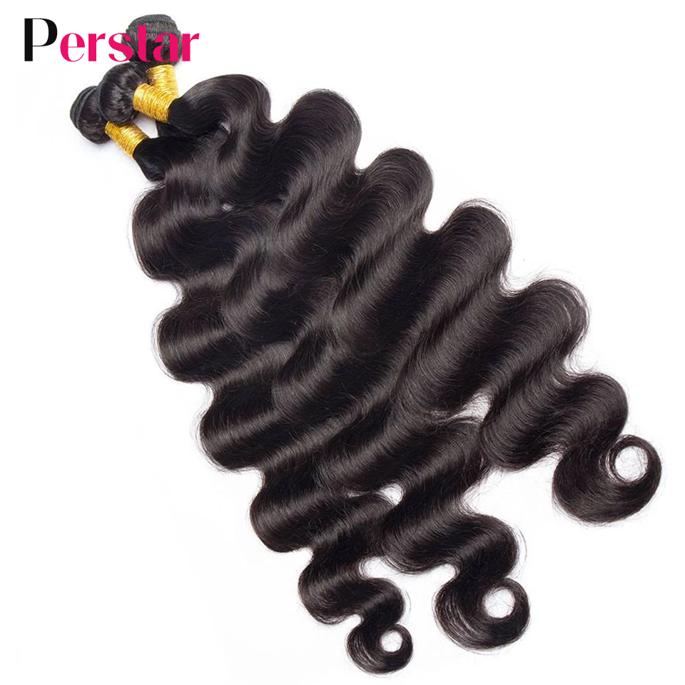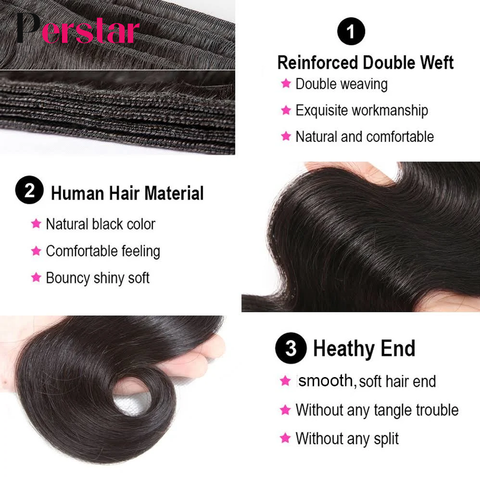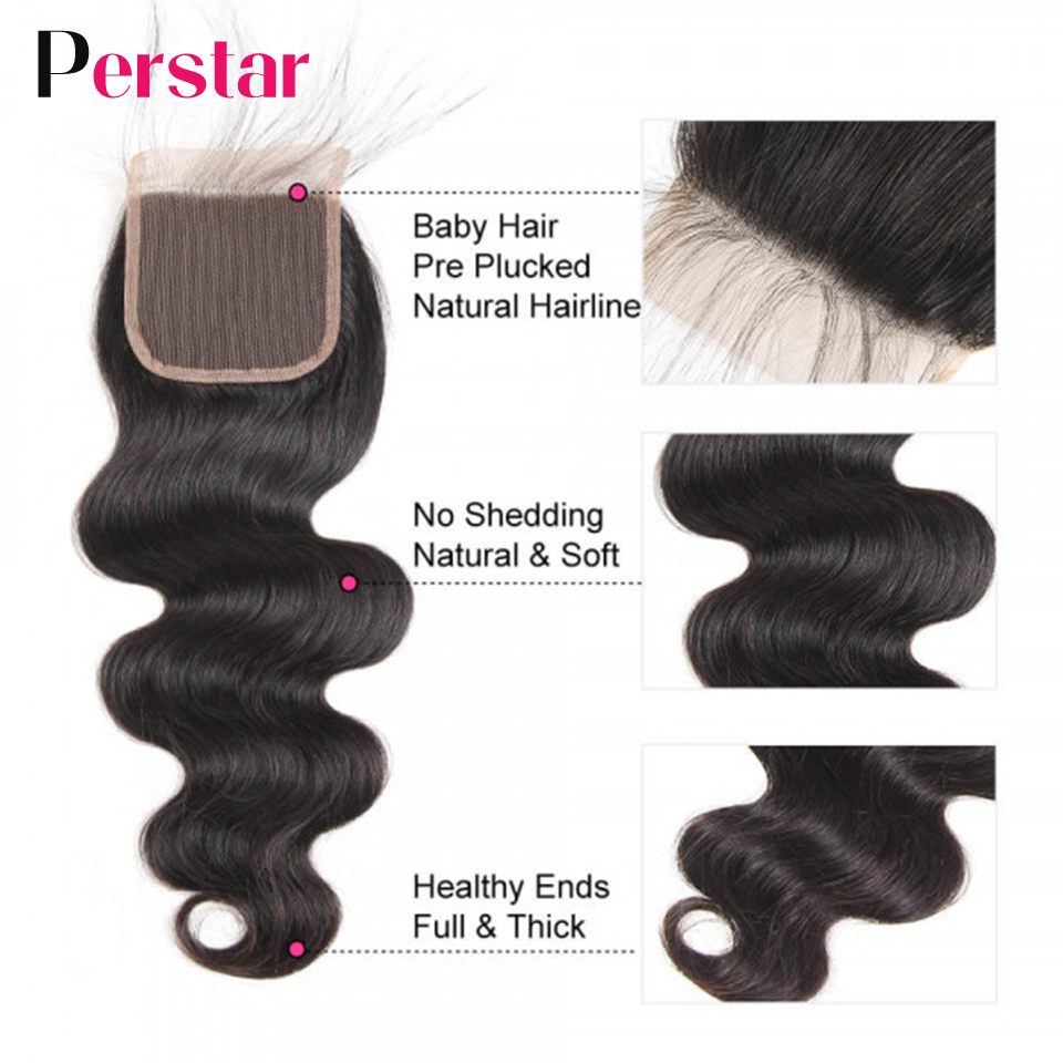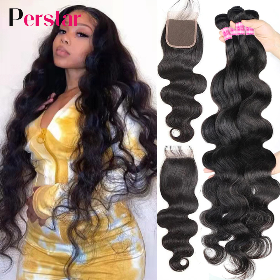 Perstar Human Hair Bundles With Closure Brazilian Body Wave Bundles With Closure Human Hair Weave Extensions 3/4 Bundles Remy
