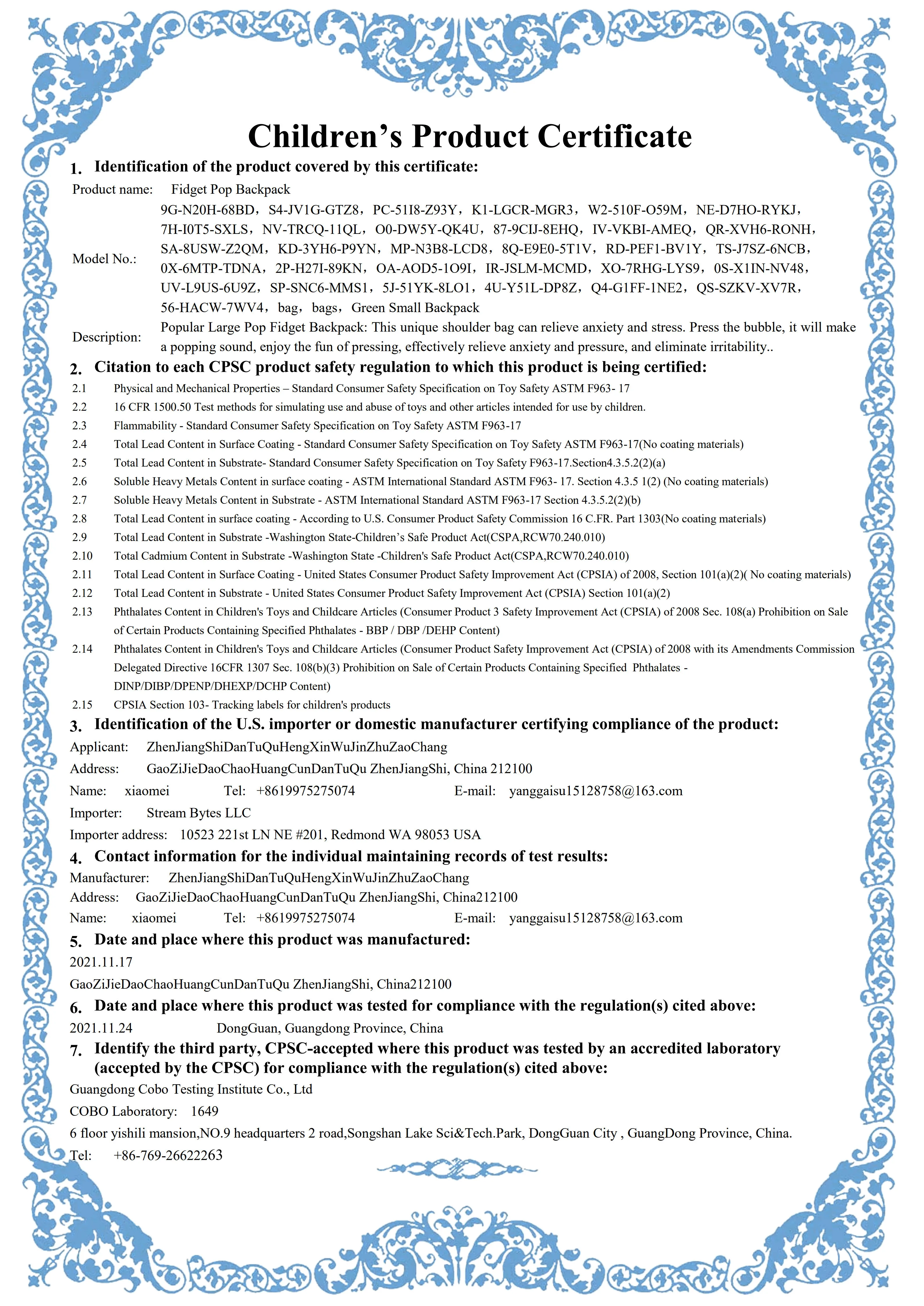 - Certification: CCC
